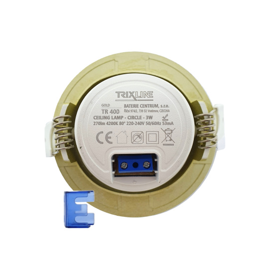 In modern interiors, so-called built-in lights. Ceiling spotlight TR 400 - round 3W has a neutral white light 4200K pleasant to the eyes, you can choose it for all interior spaces - kitchen, dining room, living room, bedroom, hallway, corridor, office. It has quick and easy installation . The surface of the spot light is shiny and golden.