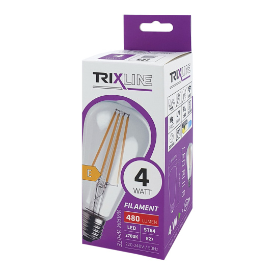 Safety information (PDF)Decorative LED bulb FILAMENT 4W 480lm ST64 E27 warm white Trixline
