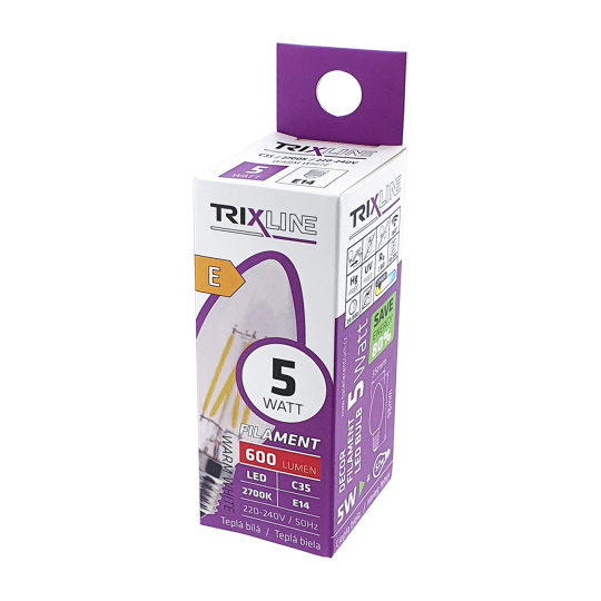 Safety information (PDF)Decorative LED bulb FILAMENT Trixline 5W 600lm C35 E14 warm white