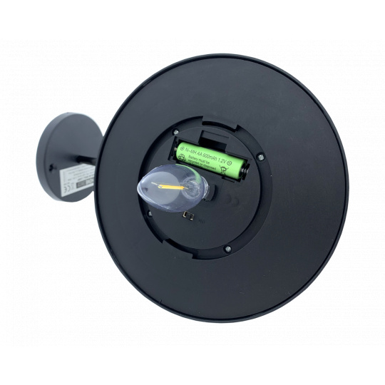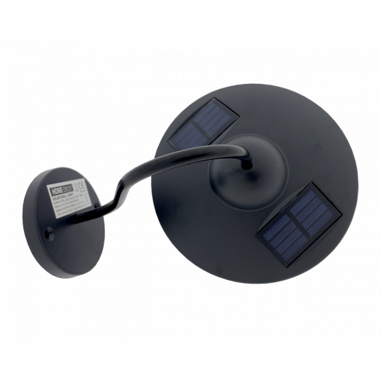 Solar outdoor lamp for mounting on the wall, fence. The built-in battery is supplied with energy from the solar panel on the cover. With an IP44 degree of protection, it is protected against splashing water.
