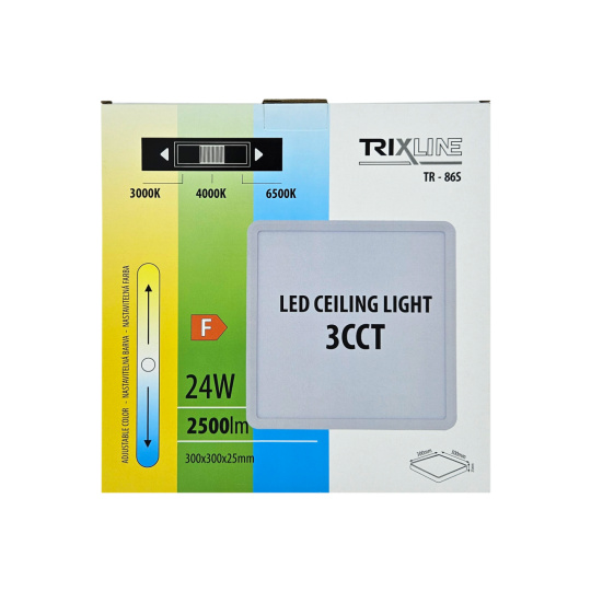 Bezpečnostní informace (PDF)LED ceiling 3CCT light TR-86S - 24W 2500lm 30x30x2.5cm Trixline