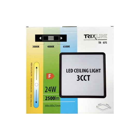 Bezpečnostní informace (PDF)LED ceiling 3CCT light TR-87S - 24W 2500lm 30x30x2.5cm Trixline