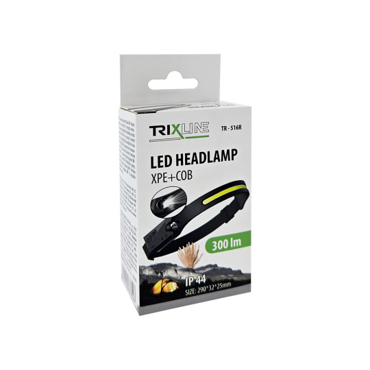 The advantage of LED COB headlamp TR-516R is its low weight of 65g, compactness (can be folded into the size of the palm), waterproof IP44 protection, motion sensor , choice of lighting modes, charging via USB-C cable, light indication of charging and battery status. The headlamp has a flexible, adjustable strap for any head size. Suitable for running, jogging, camping, hiking, fishing, cycling, dog walking, reading, outdoor activities, recreation, construction, emergency, etc.
