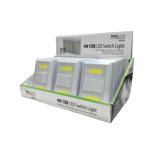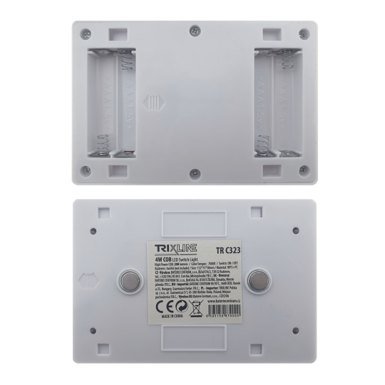 Practical, powerful, night light switch TR C323 powered by 4xAAA pencil batteries. Magnetic attachment. ON/OFF switch on the front.