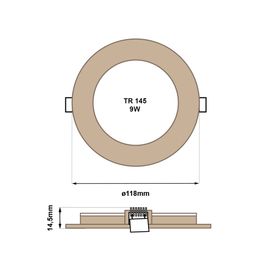 - Outer dimension of light: ø118x14.5mm