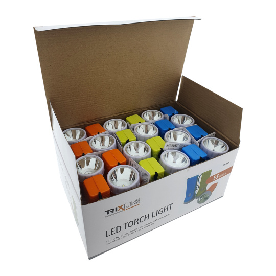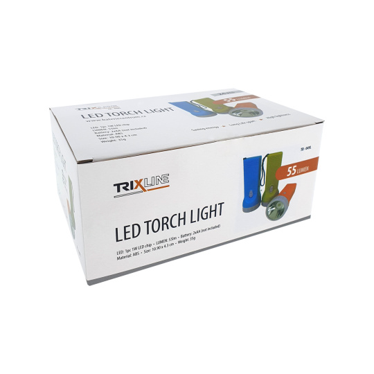 The practical, light LED hand torch TR-049L Trixline is powered by 2xAA pencil batteries (not included in the package). The switch located on the body of the lamp is used to turn it on. The lamp body has a rectangular shape. The price shown is for 1 pc of lamp. We have 3 colors in the offer - yellow, orange and blue (you can indicate which color of the lamp you are interested in in the notes of the order).