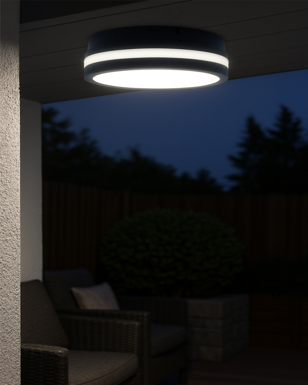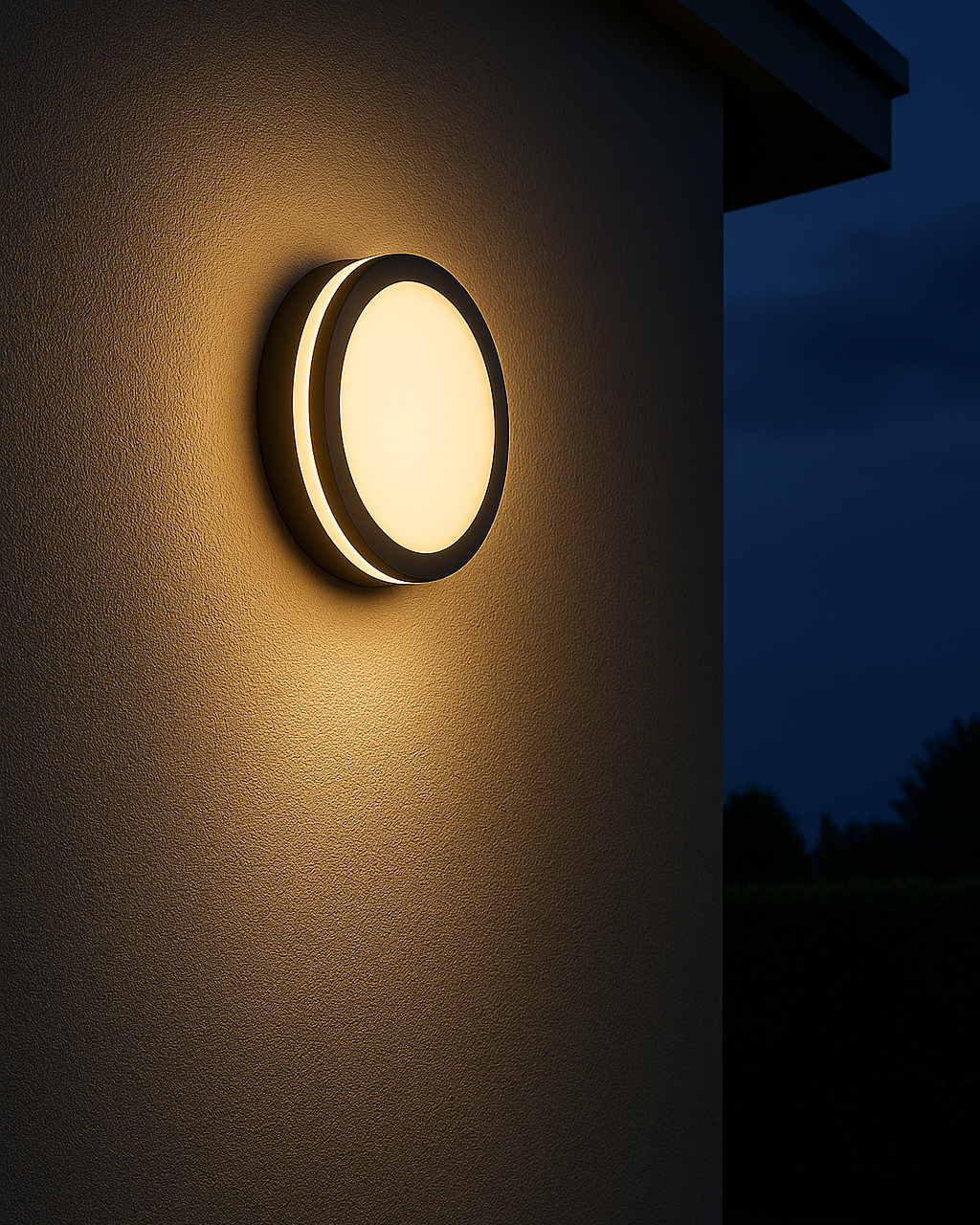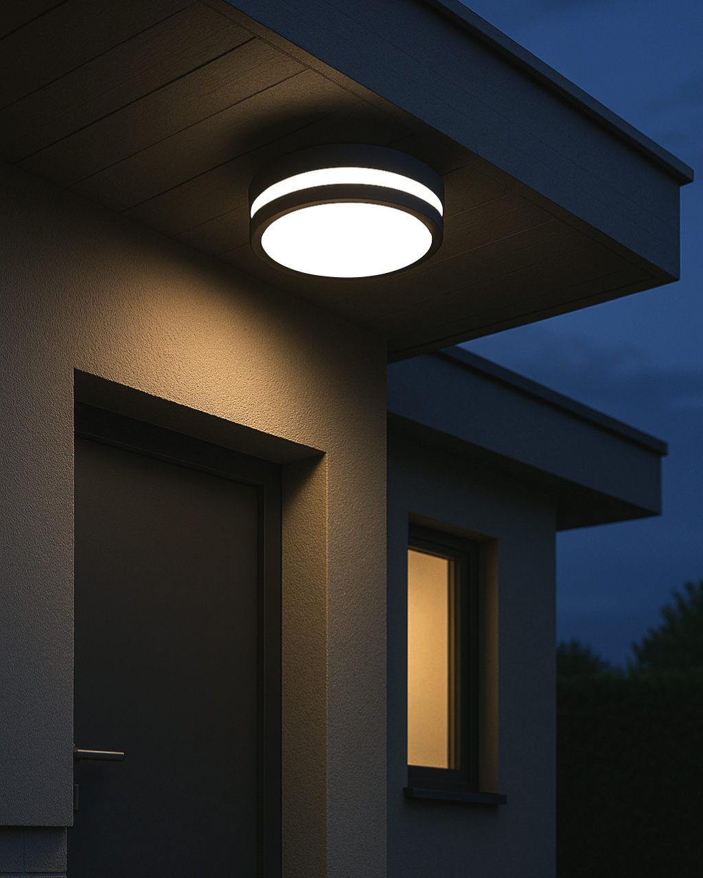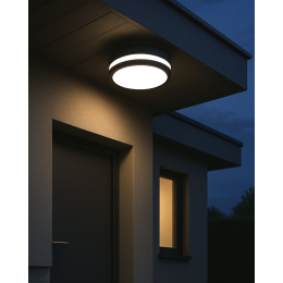 - Covered outdoor areas (e.g. terraces, entrance shelters) – IP54 protection allows for outdoor use if the location is partially covered