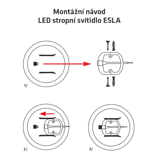 - Attach the light holder to a solid surface, e.g. on the ceiling, wall, etc. (2 screws, 2 dowels are part of the package).