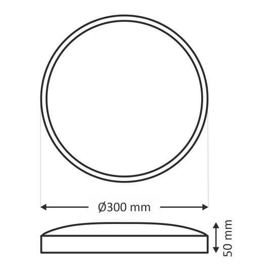- Outer dimension of light: ø300x50mm