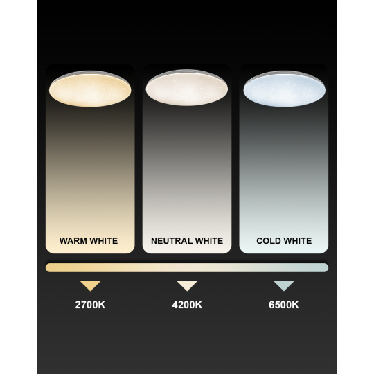 LED ceiling lamp TR-612C - VENTA Trixline in white color with a triple silver strip around the perimeter and a sparkling effect. The lamp has a variable design where you can remove the silver strips and leave only pure white edges. Is intended for indoor spaces such as living rooms, bedrooms, halls, offices, corridors and similar places. Using the included controller, you can switch between three light temperatures ranging from 2700K to 6500K , which can be dimmed as needed to create a pleasant atmosphere. At maximum dimming, consumption drops to just 8W from the original 60W, which guarantees energy savings.Another option on the remote control is the night mode and the 30-second function, after which the LED light turns itself off. After switching off, the lamp remembers the last set mode , which ensures convenient and intuitive use.