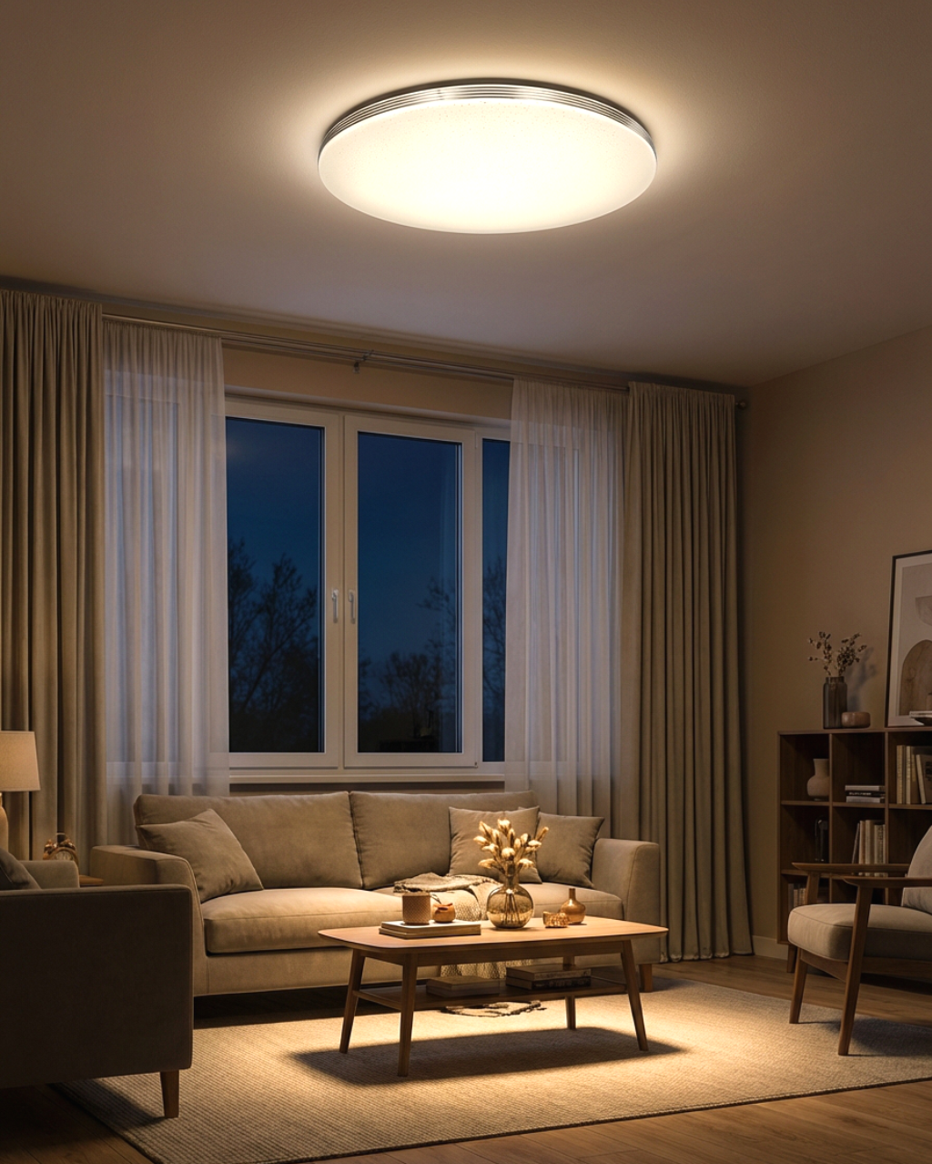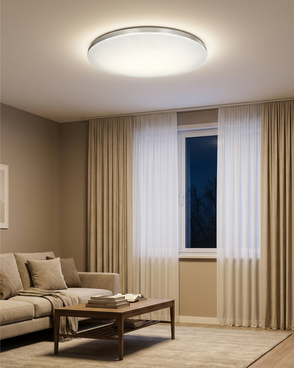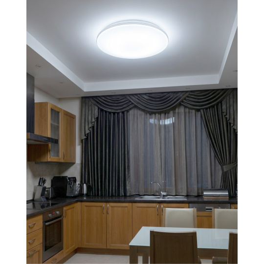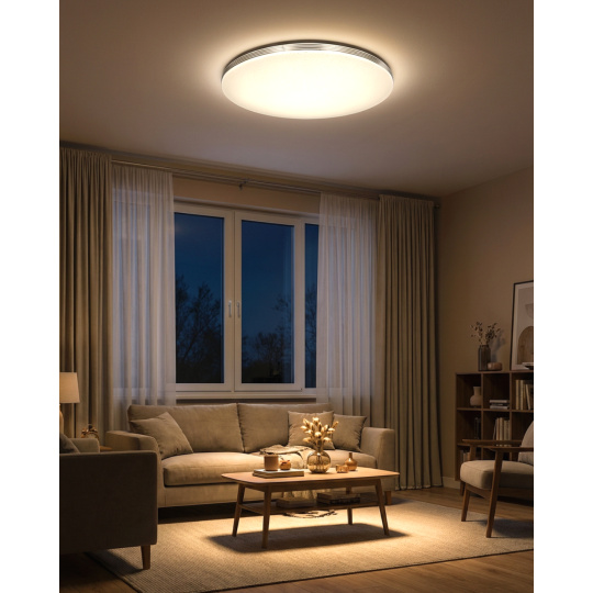 LED ceiling lamp TR-613C - LIKA Trixline in white color with a triple silver strip around the perimeter and a sparkling effect. The lamp has a variable design where you can remove the silver strips and leave only pure white edges. Is intended for indoor spaces such as living rooms, bedrooms, halls, offices, corridors and similar places. Using the included controller, you can switch between three light temperatures ranging from 2700K to 6500K , which can be dimmed as needed to create a pleasant atmosphere. At maximum dimming, consumption drops to just 14W from the original 80W, which guarantees energy savings.Another option on the remote control is the night mode and the 30-second function, after which the LED light turns itself off. After switching off, the lamp remembers the last set mode , which ensures convenient and intuitive use.