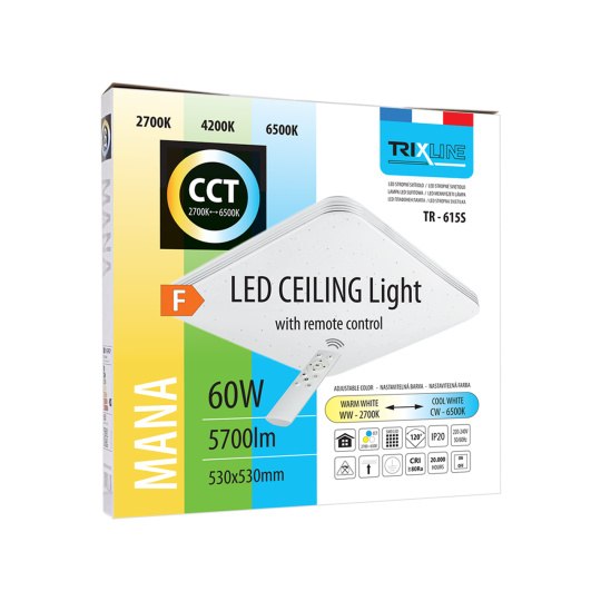 LED ceiling light TR-615S - MANA 60W 5700lm 53x53cm CCT + Trixline controller