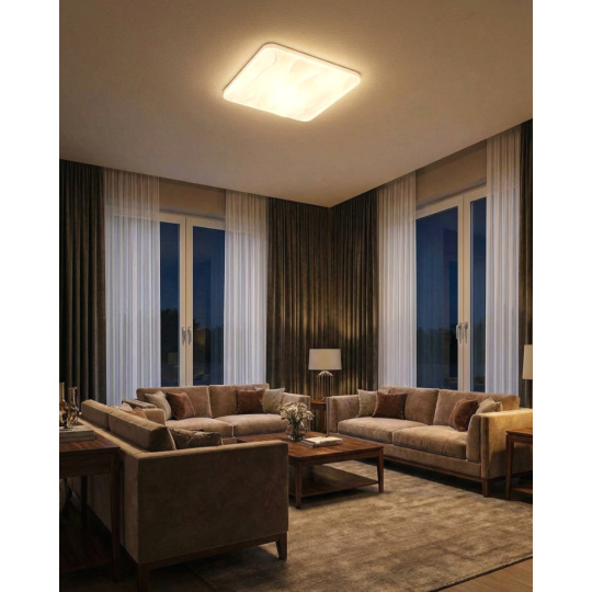 LED ceiling light TR-610S - NERIS Trixline in white color with a sparkling effect is intended for indoor spaces such as living rooms, bedrooms, halls, offices, corridors and similar places. Using the included controller, you can switch between three light temperatures ranging from 2700K to 6500K , which can be dimmed as needed to create a pleasant atmosphere. At maximum dimming, consumption drops to just 8W from the original 60W, which guarantees energy savings.Another option on the remote control is the night mode and the 30-second function, after which the LED light turns itself off. After switching off, the lamp remembers the last set mode , which ensures convenient and intuitive use.