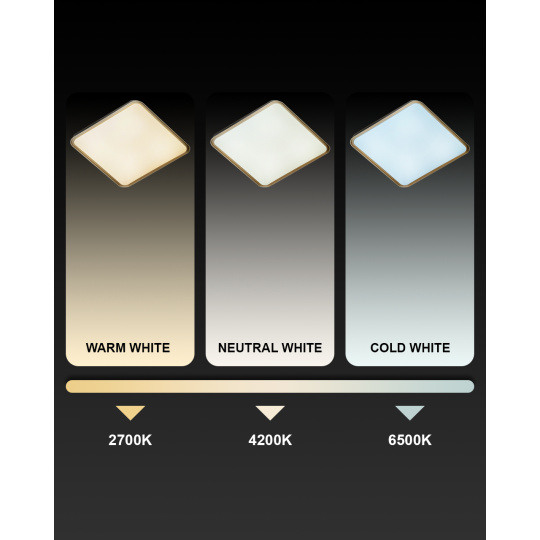 LED ceiling lamp TR-618S - UNA Trixline in black color with gold trim is intended for indoor spaces such as living rooms, bedrooms, halls, offices, corridors and similar places. Using the included controller, you can switch between three light temperatures ranging from 2700K to 6500K , which can be dimmed as needed to create a pleasant atmosphere. At maximum dimming, consumption drops to just 8W from the original 60W, which guarantees energy savings.Another option on the remote control is the night mode and the 30-second function, after which the LED light turns itself off. After switching off, the lamp remembers the last set mode , which ensures convenient and intuitive use.