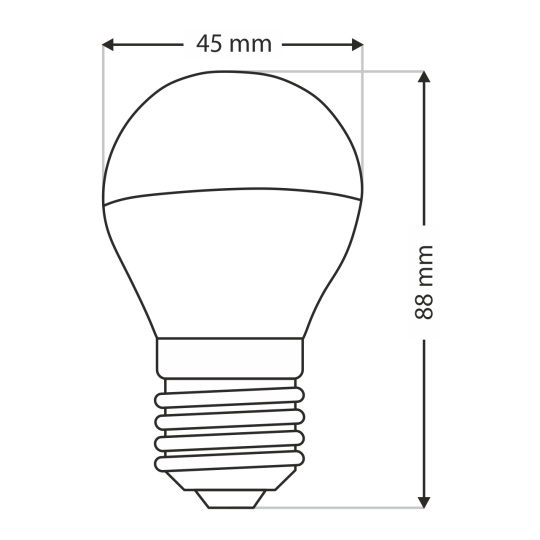 Efficient and energy-saving LED bulb with a E27 base in the shape of G45 (mini globe) made from Alu-plastic, with a power consumption of 8W and a luminous flux of 640lm.