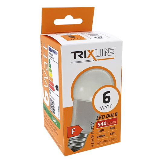 LED BULB TRIXLINE is an economical LED bulb with an E27 base, environmentally friendly, because it does not contain any mercury or lead, moreover, it proves itself well even at extremely low and high temperatures, when there are problems with filament bulbs.Its lifespan reaches up to 30,000 hours.Thanks to its 6W output, it will serve perfectly as a replacement for a classic 51W light bulb. The LED bulb lights up immediately after switching on without any delay and emits a pleasant warm white light of 2700K.