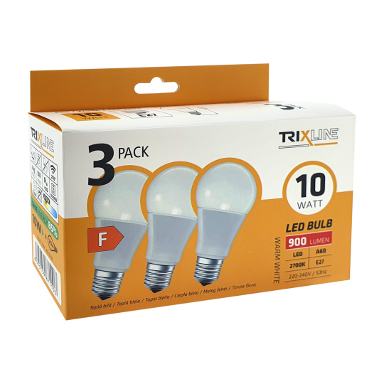 LED bulb Trixline 10W A60 E27 warm white 3 PACK