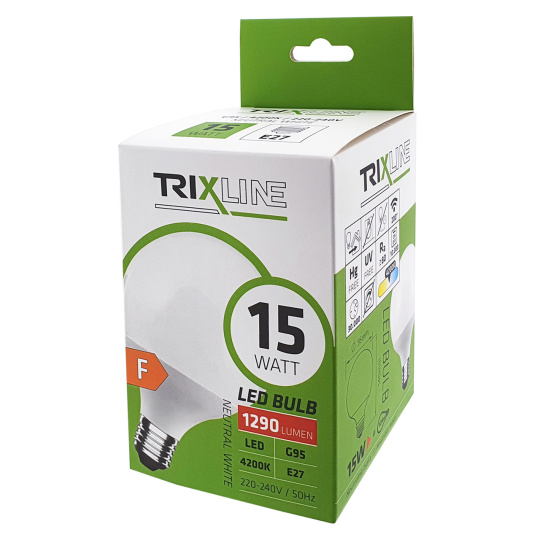 LED BULB TRIXLINE is an economical LED bulb with an E27 base, environmentally friendly, because it does not contain any mercury or lead, moreover, it proves itself well even at extremely low and high temperatures, when there are problems with filament bulbs.Its lifespan reaches up to 30,000 hours.Thanks to its 15W output, it will serve perfectly as a replacement for a classic 104W light bulb. The LED bulb lights up immediately after switching on without any delay and emits a pleasant neutral white light of 4200K.