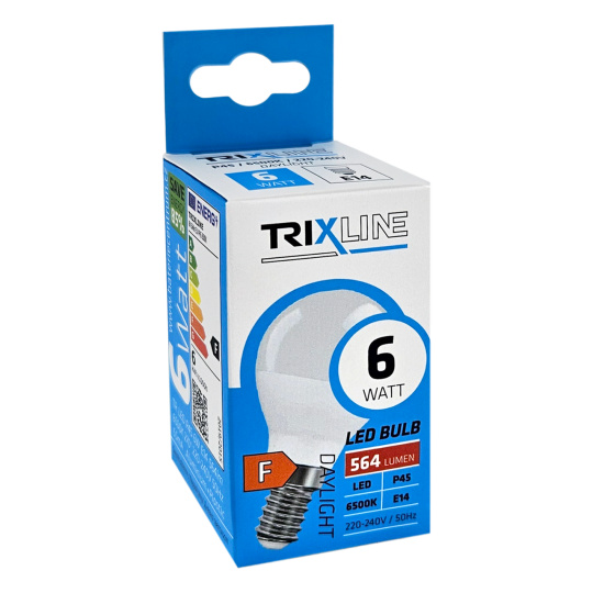 LED BULB TRIXLINE is an economical LED bulb with an E14 base, environmentally friendly, because it does not contain any mercury or lead, and it also proves itself well even at extremely low and high temperatures, when there are problems with filament bulbs.Its lifespan reaches up to 30,000 hours.Thanks to its 6W output, it will serve perfectly as a replacement for a classic 54W light bulb. The LED bulb lights up immediately after switching on without any delay and emits a cold white light of 6500K.