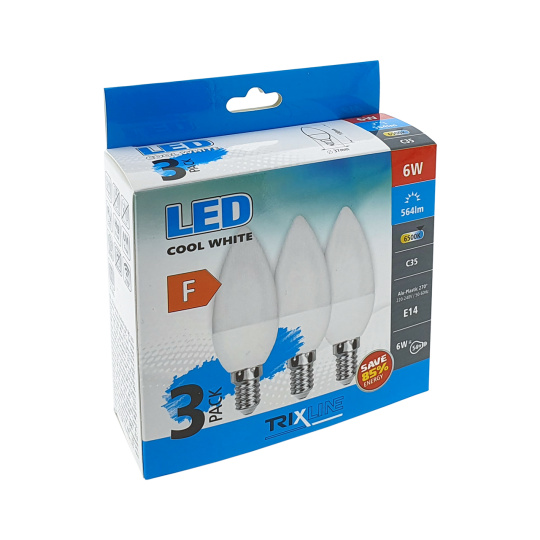 LED bulb Trixline 6W C35 E14 cold white 3 PACK