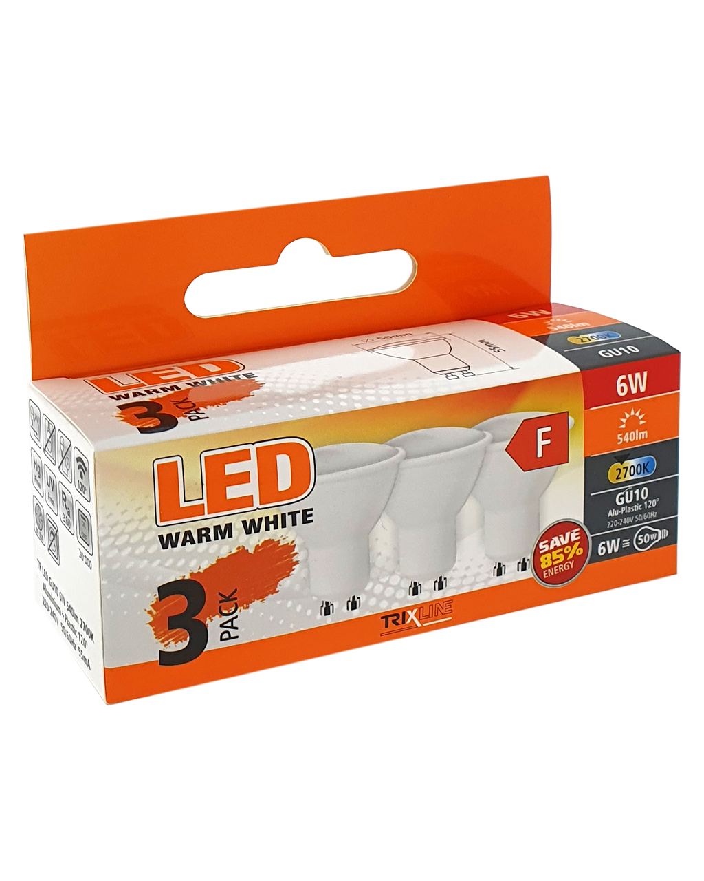 LED bulb Trixline 6W GU10 warm white 3 PACK