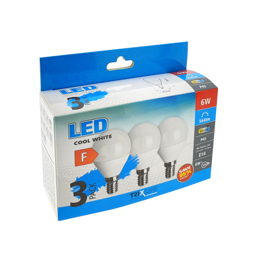 LED bulb Trixline 6W P45 E14 cold white 3 PACK