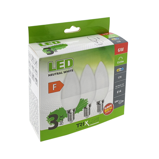 LED bulb Trixline 6W C35 E14 neutral white 3 PACK