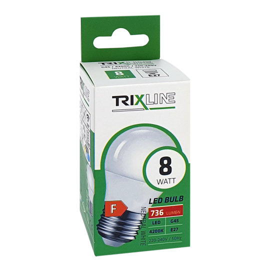 LED energy-saving lamp TRIXLINE (you save 85% energy) with an E27 base, environmentally friendly, contains no mercury or lead, moreover, it proves itself well even at extremely low and high temperatures, when there are problems with filament bulbs.Its lifespan reaches up to 30,000 hours.Thanks to its 8W output, it will serve perfectly as a replacement for a classic 60W light bulb. The LED bulb lights up immediately after switching on without any delay and emits a pleasant neutral white light of 4200K.