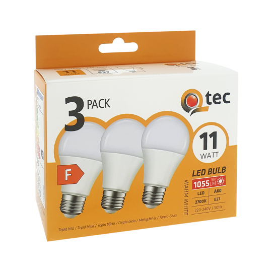 LED bulbs 11W/1055lm/A60/E27 warm white 3 PACK Qtec