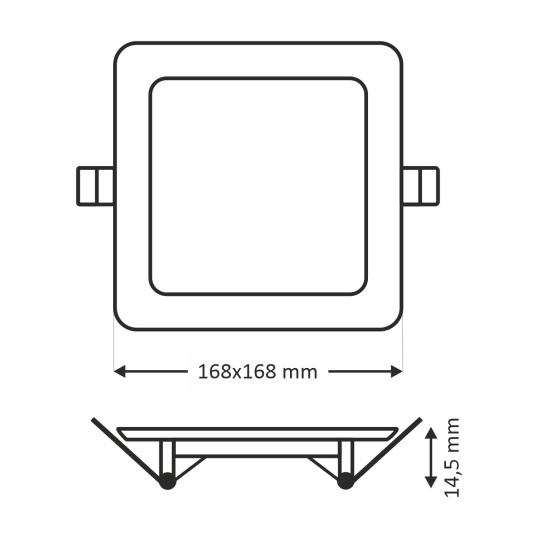 Outer dimension of the light: 168x168x14.5mm / Mounting hole: 153x153mm