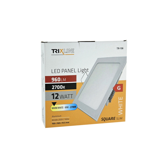 TR-136 LED panel 12W 960lm 2700K, square built-in Trixline