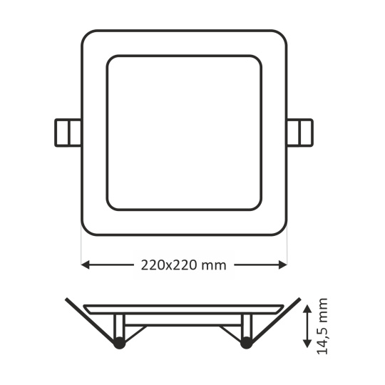Outer dimension of the light: 220x220x14.5mm / Mounting hole: 205x205mm