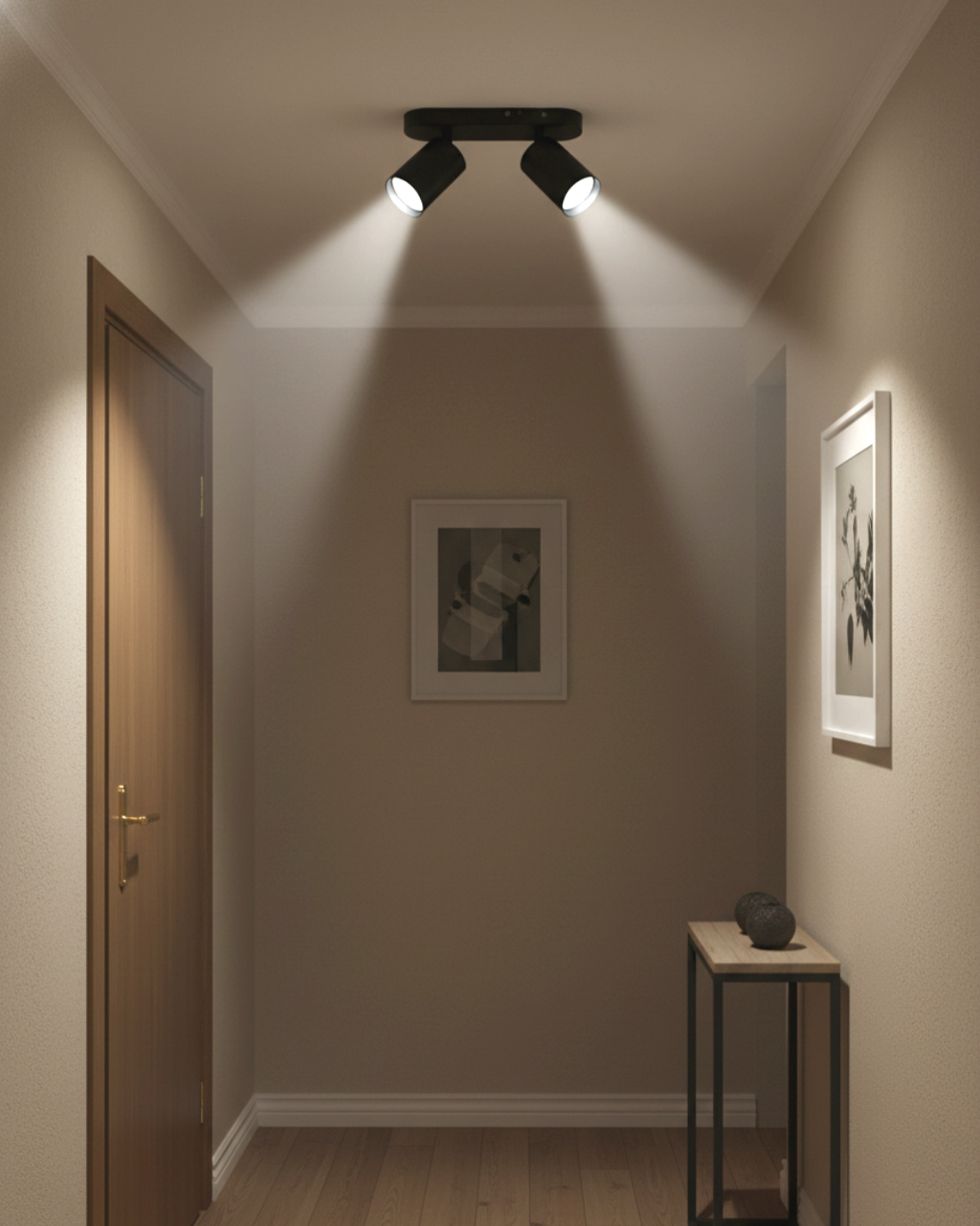 The modern and practical ceiling spotlight Q-03AD by Qtec is suitable for interior lighting with an emphasis on functionality and design.The light fixture is designed for two LED bulbs with a GU10 base (bulbs are not included). Allows flexible adjustment of the lighting direction.