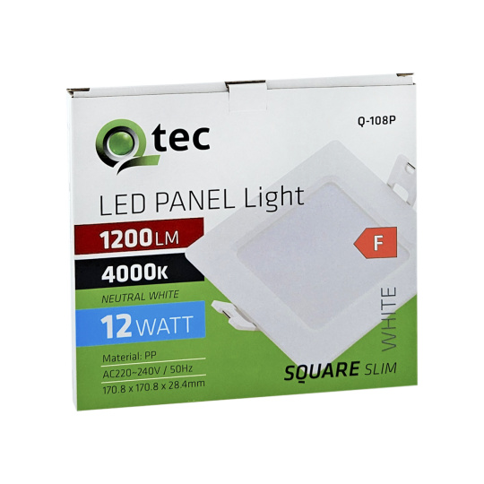 Square recessed LED panel Qtec Q-108P with a power of 12W and a luminous flux of 1200lm in neutral white light color 4000K.