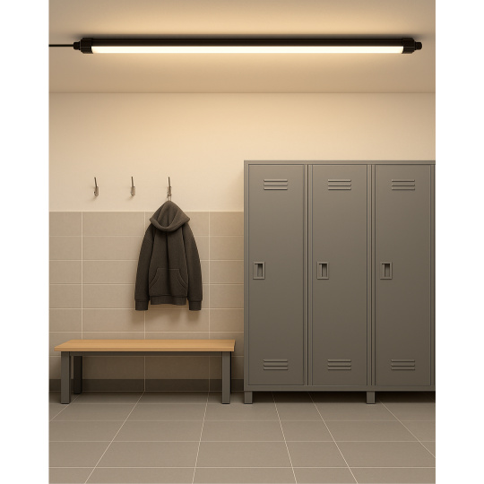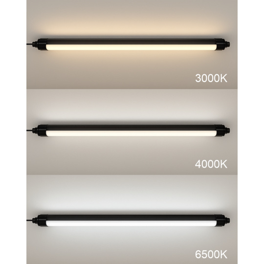 The light has the option to set the light temperature to 3000K (warm white), 4000K (neutral white), or 6500K (cool white). The lighting fixture offers a wide range of applications and is suitable for installation in commercial and industrial spaces, for example. into corridors, halls, offices, dining rooms, cafes, shops, workshops, garages, etc.Thanks to energy-saving LED technology, it reduces energy consumption and provides long lifespan.The luminaire is made of high-quality plastic (PC) and features high resistance to moisture and dust thanks to the IP65 rating.Key Features: