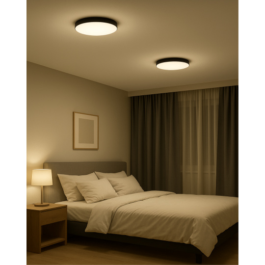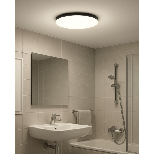 LED ceiling light Q-221CP FLUME with a power of 10W and high luminosity of 850lm provides sufficient lighting with minimal energy consumption. Assembly is quick and easy. High-quality, durable material and IP44 protection ensure long-term trouble-free operation even in environments with higher humidity.The light fixture is suitable for the kitchen, living room, bathroom, toilet, etc.The elegant circular shape in black design will harmoniously fit into any space.