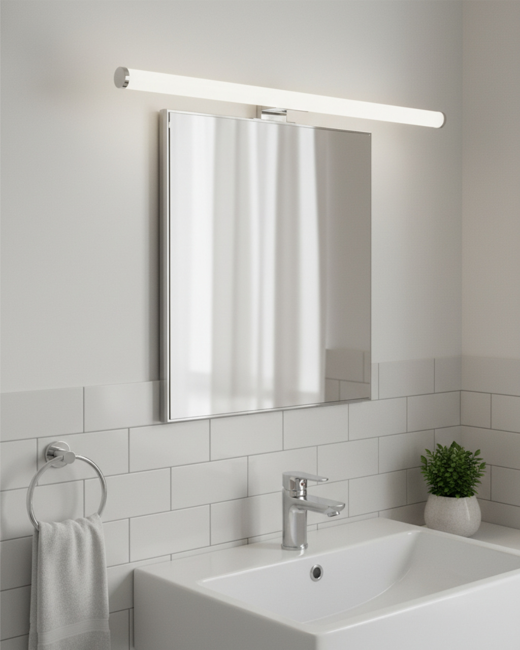 The advantage of the bathroom wall light Q-315CH Qtec 7W is its modern design, quality workmanship, and the IP44 rating allows the installation of the light in rooms with increased humidity, e.g. bathrooms, 3-in-1 mounting options on a mirror, cabinet, or wall. The light source consists of energy-saving LED diodes that emit a neutral white light color of 4000K, which is pleasant for the eyes.