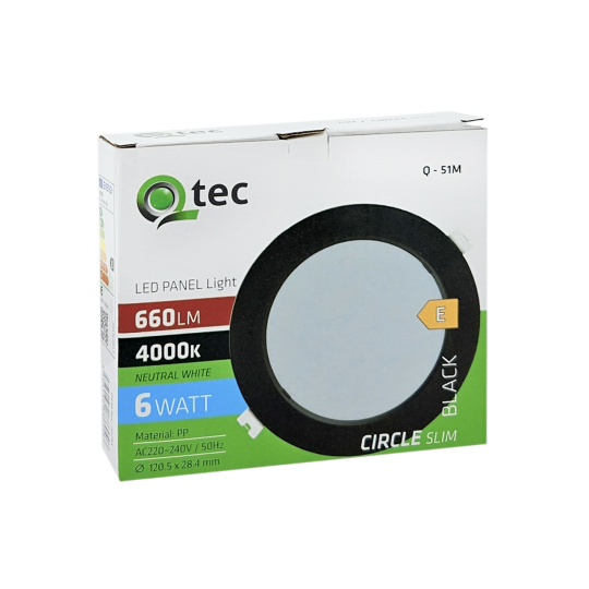 Q-51M LED panel 6W 660lm 4000K black - round recessed Qtec