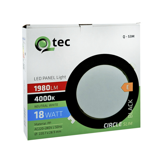 Q-53M LED panel 18W 1980lm 4000K black - round recessed Qtec