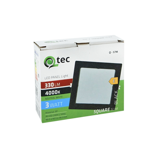 Q-57M LED panel 3W 330lm 4000K black - square surface-mounted Qtec