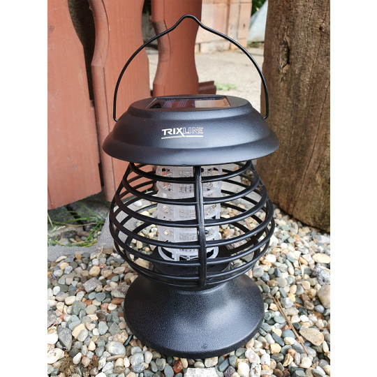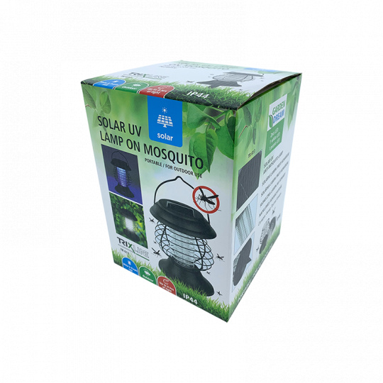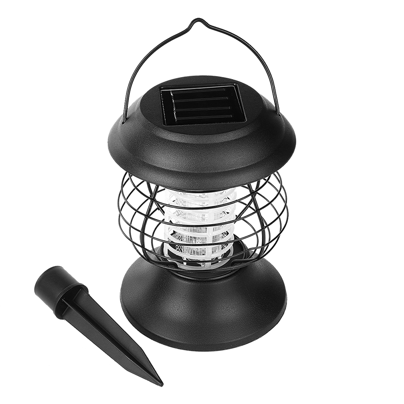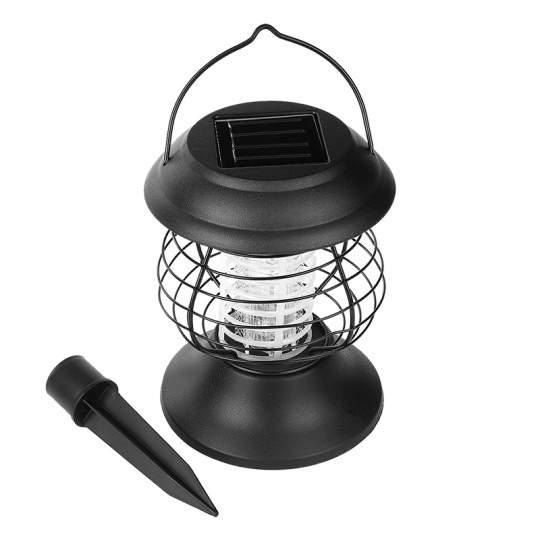 LED portable solar lamp, with two LEDs, 1x classic white for decorative lighting and 1x UV violet LED for killing mosquitoes.With an IP44 degree of protection, it is protected against splashing water in all directions.