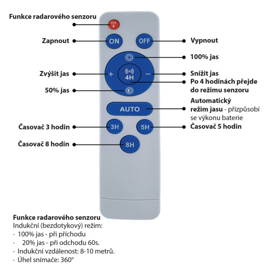 - Remote control + 2 batteries (2xAAA R03 UM4/1.5V)
