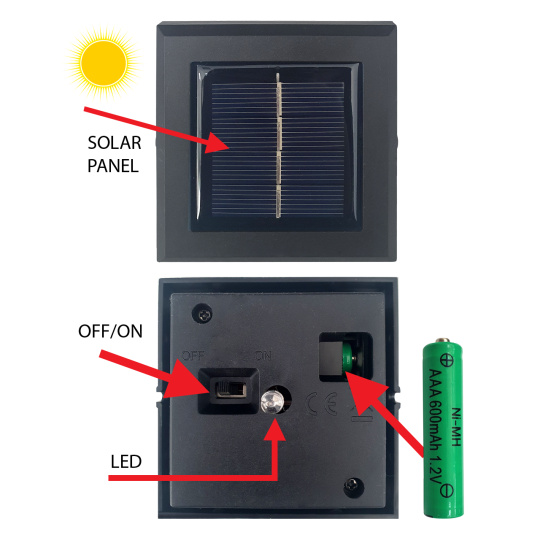 4. After charging the battery, leave the power switch in the ON position. The light will automatically turn on at dusk and charge during the day.