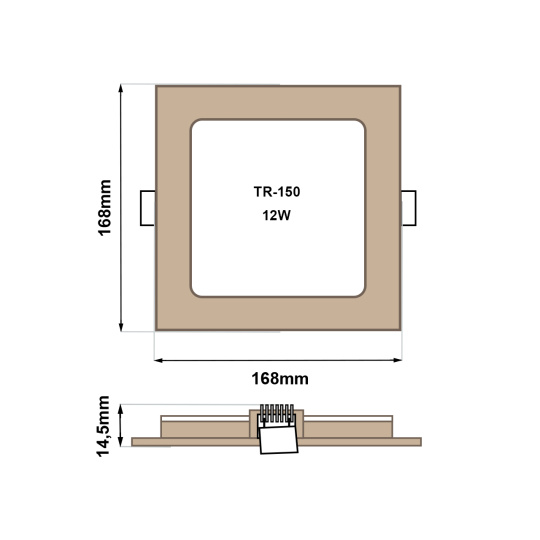 - Outer dimension of light: 168x168x14.5mm