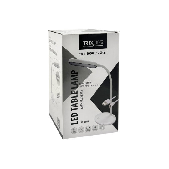 This white LED table lamp with a simple design will become an elegant addition to any interior. Thanks to the flexible arm that can be rotated 360°, you can easily adjust it to the ideal position for reading, working or relaxing. The lamp is dimmable, which allows you to adjust the brightness according to the current need. With a built-in USB port, charging is quick and convenient (the lamp does not light up when charging). Ideal for the office, children's room or bedroom, it brings soft and pleasant lighting that will improve the atmosphere in any space.