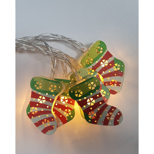 Decorate your home or garden with a stylish garland featuring 10 metal lights in the shape of a stocking.