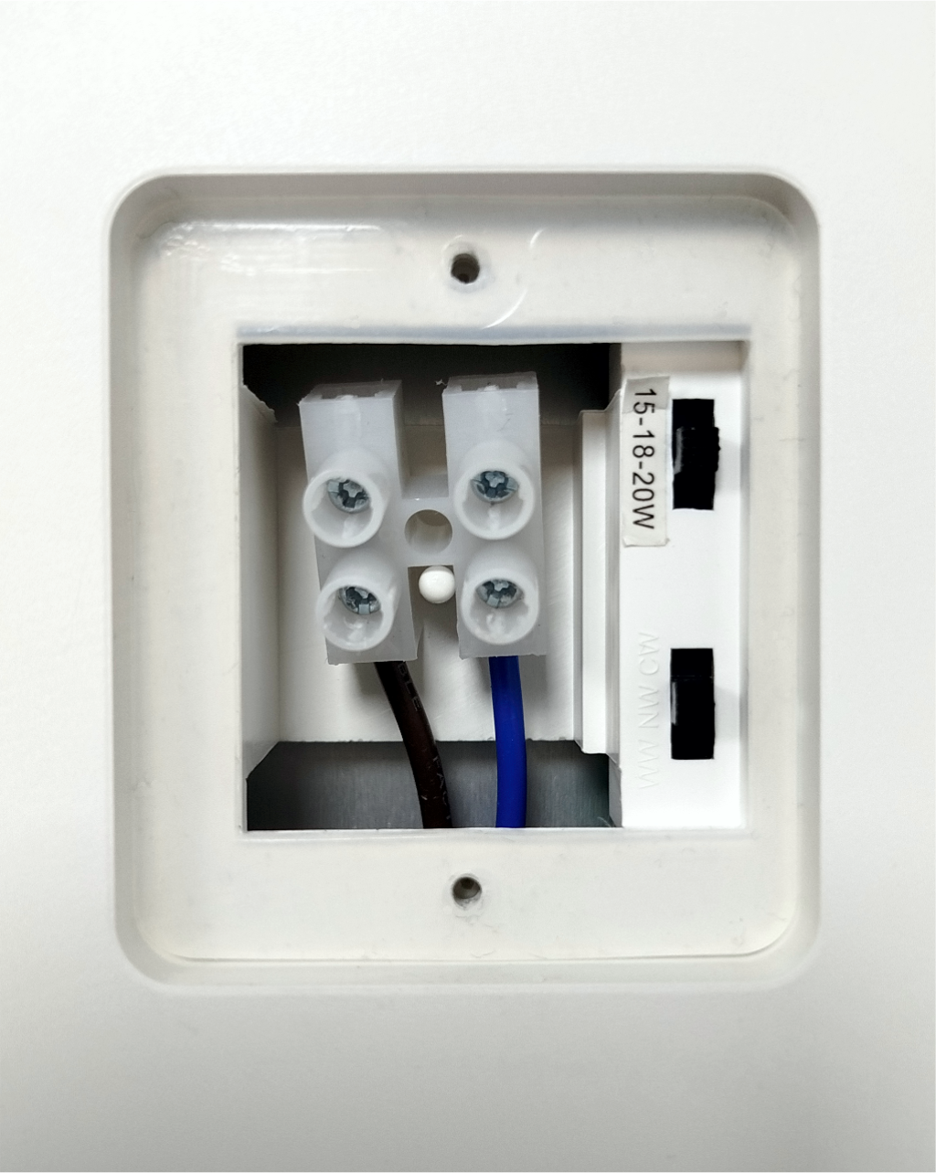 - The color and light performance are adjusted on the back of the light, after unscrewing the rear cover using sliders.