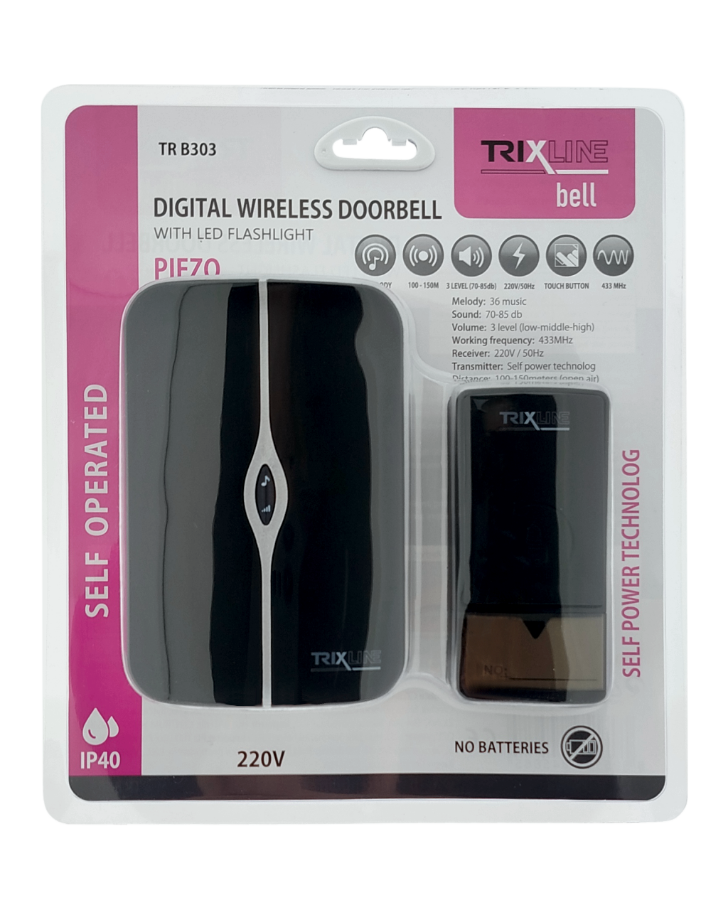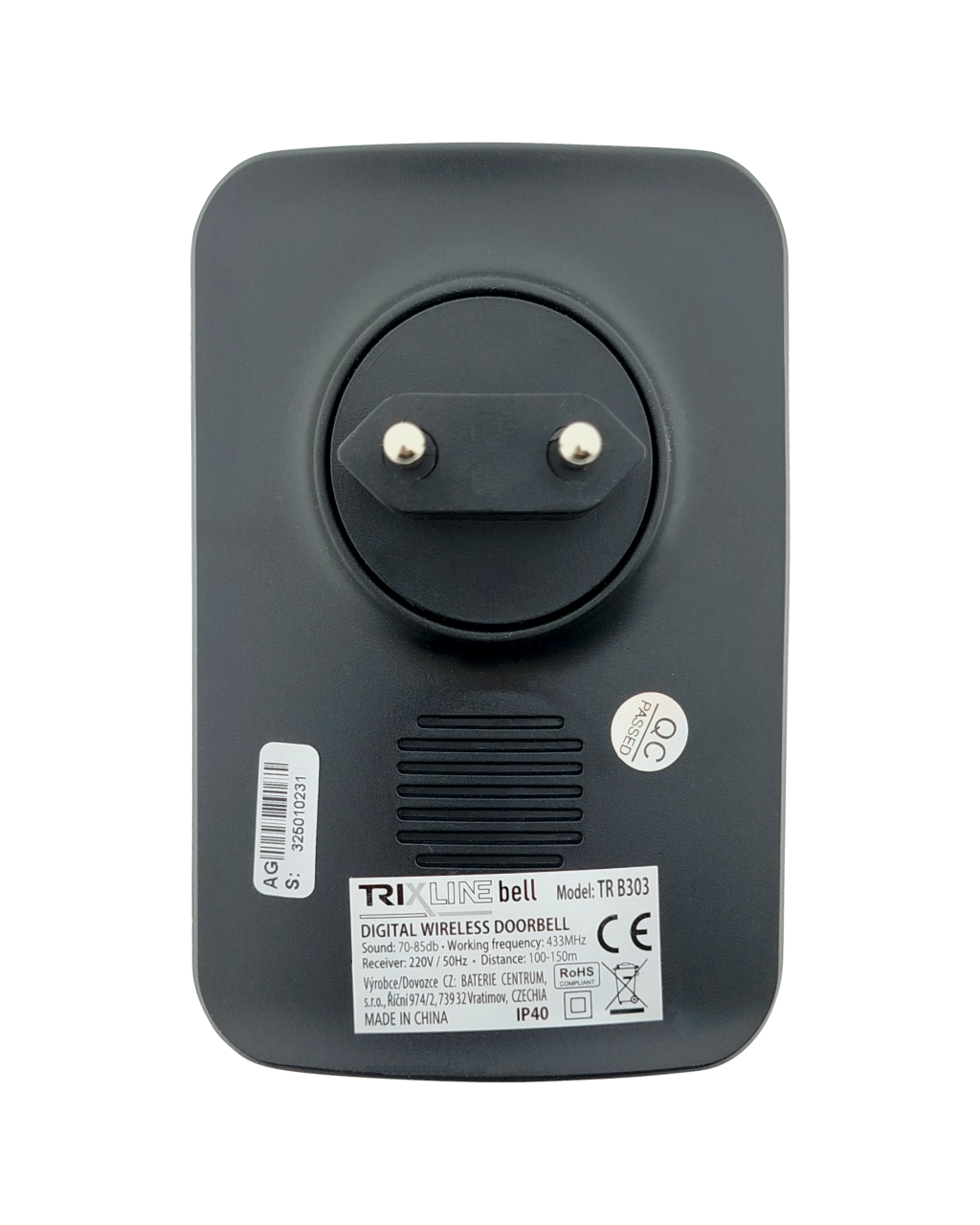Wireless doorbell for the Trixline BELL TR B303 socket